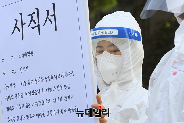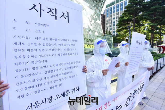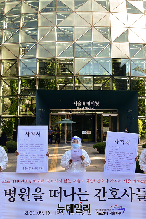 의료연대본부는 "1년 8개월이 흘렀지만 의료현장의 간호인력 부족 문제 해결을 위한 근본적 대책이 마련되지 않다"며 "서울시 공공병원 간호사들이 사직서를 꺼내 들었다"고 말했다.