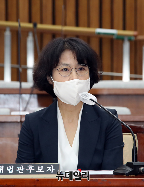 오경미 대법관 후보자가 15일 오전 국회에서 열린 인사청문회에 출석해 의원들이 질문에 답하고 있다. (사진=공동취재단)