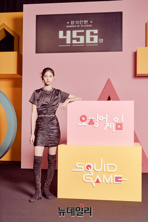 모델 겸 배우 정호연이 15일 오전 온라인으로 진행된 넷플릭스 시리즈 '오징어 게임(연출 황동혁)' 제작발표회에서 포즈를 취하고 있다.