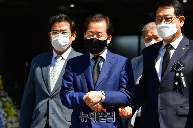 홍준표 국민의힘 대선 경선 후보가 15일 서울 여의도순복음교회 베다니홀에 마련된 故 조용기 원로목사 빈소에서 조문하고 있다. (사진=국회사진취재단)
