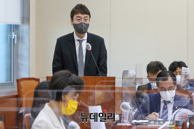 김웅 국민의힘 의원이 16일 오전 국회에서 열린 환경노동위원회 전체회의에서 발언을 하고 있다. (사진=공동취재단)