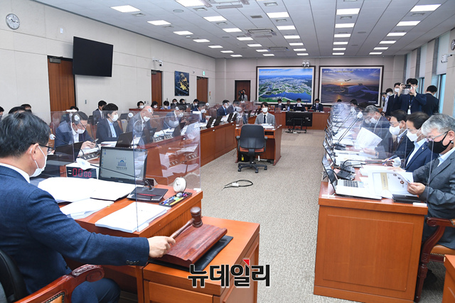 이헌승 국토교통위원장이 16일 오전 국회에서 열린 국토교통위원회 전체회의에서 의사봉을 두드리고 있다. (사진=공동취재단)