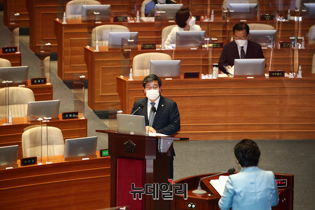 전해철 행정안전부 장관이 16일 오후 국회에서 교육·사회·문화에 관한 대정부질문에서 질의에 답하고 있다.