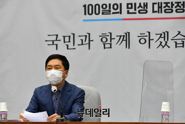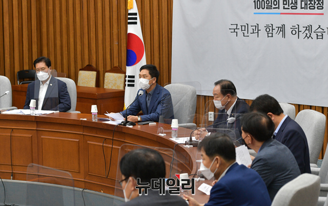 김기현 국민의힘 원내대표가 17일 국회에서 열린 원내대책회의에 참석해 모두발언을 하고 있다. (사진=공동취재단)