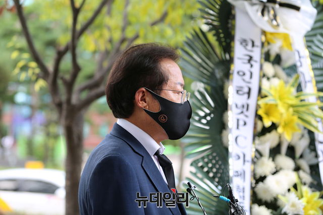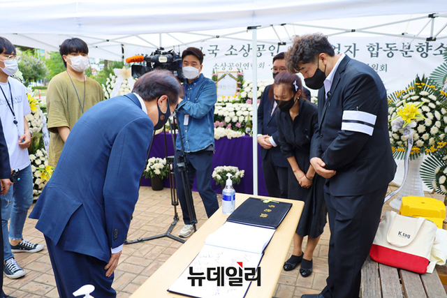 국민의힘 홍준표 대선 예비후보가 18일 오후 서울 여의도 국회 인근에 마련된 자영업자·소상공인 합동 분향소를 찾아 조문하고 있다. 홍 후보는 "자영업자·소상공인 나아가 대한민국 서민들이 아픔을 겪지 않도록 '서민 대통령'이 되겠다"고 말했다. (사진=홍준표 캠프)