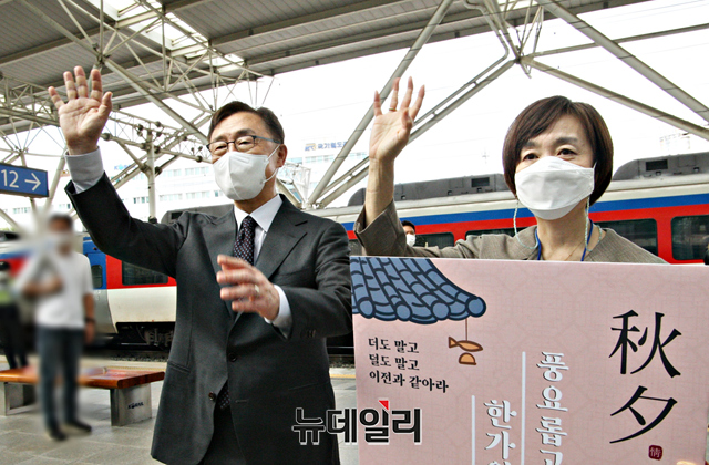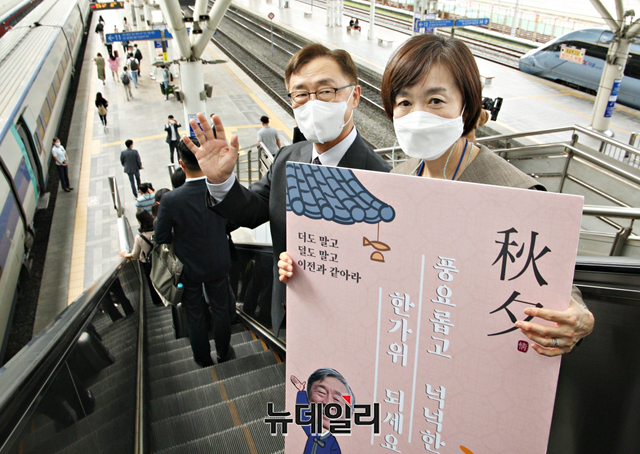 [포토] 서울역서 귀성객에 인사하는 최재형