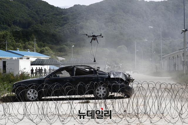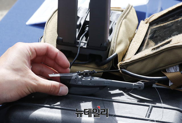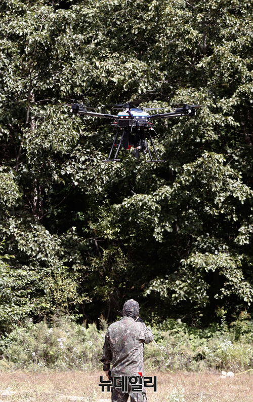 육군 장병이 16일 오후 강원 인제군 육군과학화전투훈련단(KCTC)에서 '아미 타이거(Army TIGER) 4.0' 전투수행에 앞서 소총 사격드론을 점검하고 있다.아미 타이거 4.0은 육군을 의미하는 영문 ARMY와 4차 산업혁명 기술로 강화된 지상군의 변화를 의미하는 Transformative Innovation of Ground forces Enhanced by the 4th industrial Revolution technology의 앞 철자를 딴 합성어다. 4.0은 4세대 첨단과학기술을 의미한다.육군은 "2023년까지 전투실험을 마치고 2024년과 2025년에는 치륜형장갑차 2개 대대 규모를 시험 운용한 후 사·여단급 부대를 대상으로 Army TIGER 4.0 단계적으로 확대하겠다"고 밝혔다. (사진=공동취재단)