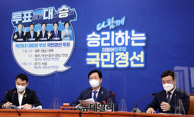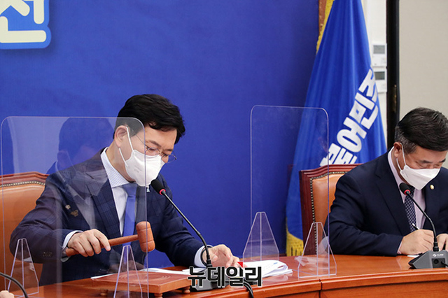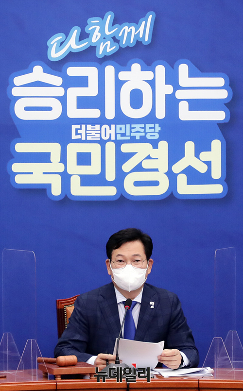 송영길 더불어민주당 대표가 27일 서울 여의도 국회 당대표회의실에서 최고위원회의를 주재하고 있다. (사진=더불어민주당)