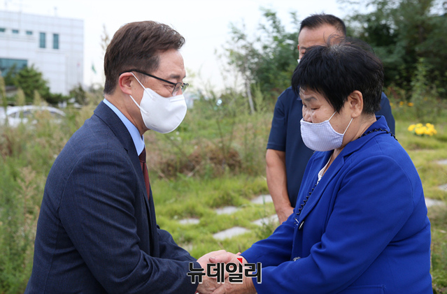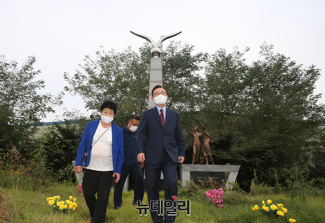 국민의힘 최재형 대선 예비후보가 27일 오후 인천 중구 98금양호희생자위령탑을 찾아 추모하고 있다. 최 후보는 "국가를 위해 희생하는 모든 분을 국가는 절대 잊지 말고, 끝까지 책임져야 한다"고 말했다. 현장에는 98금양호 선장의 부인과 희생자 유가족이 참석했다. (사진=최재형 캠프)