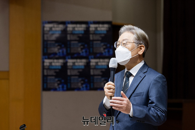 더불어민주당 이재명 대선 예비후보가 29일 오전 서울 여의도 중앙보훈회관에서 열린 개발이익 환수 법제화 2번째 긴급토론회에서 발언하고 있다. (사진=이재명 캠프)