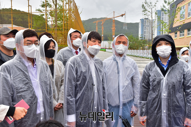 [포토] 대장동 개발 공사현장 둘러보는 이준석 대표