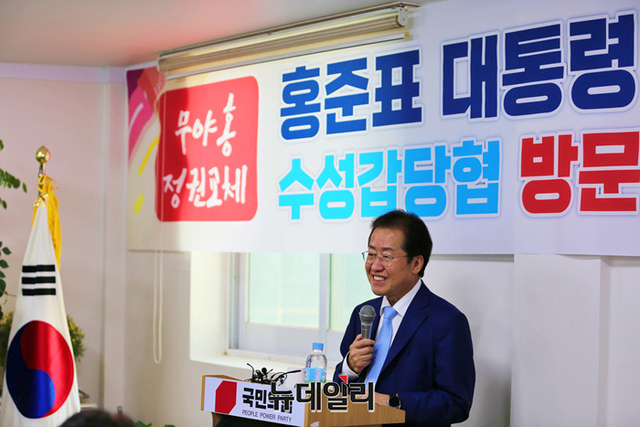대구지역을 방문중인 홍준표 국민의힘 대선 예비후보가 30일 오전 대구 수성구 대구광역시당에서 열린 jp희망캠프 임명장 수여식에 참석해 발언하고 있다. (사진=홍준표 캠프)