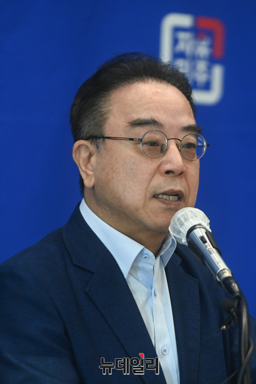 이석우 전 국무총리 비서실장이 1일 오전 서울 중구 한국프레스센터에서 열린 '한반도 평화법' 철회 촉구 및 '미국내 친북조직의 하원의원 포섭 활동' 공개 긴급 기자회견에서 한반도 평화법안 철폐 촉구 10만명 서명운동을 주제로 발표하고 있다.