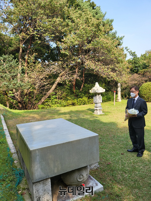 [포토] 가인 김병로 초대 대법원장 묘역 찾은 최재형