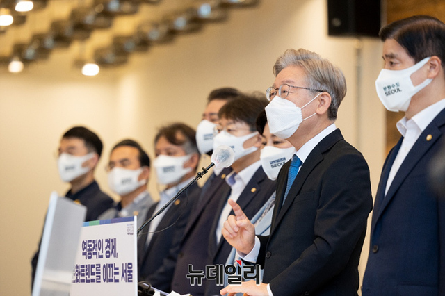 [포토] 서울공약발표 기자회견 갖는 이재명 후보