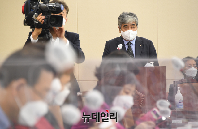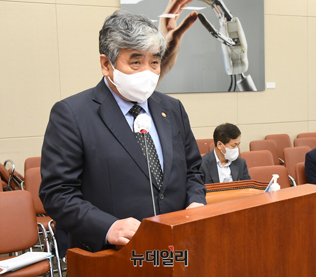 한상혁 방송통신위원회 위원원장이 5일 오전 국회에서 열린 과학기술정보방송통신위원회 2021년도 국정감사에서 업무보고 하고 있다. (사진=공동취재단)