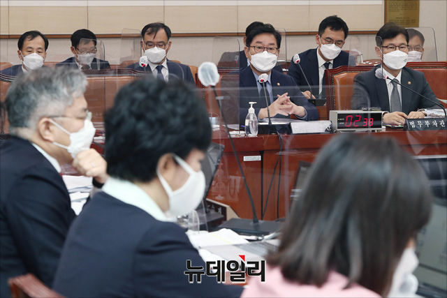 박범계 법무부 장관이 5일 오전 국회에서 열린 국회 법제사법위원회 전체회의 법무부 등에 대한 2021 국정감사에서 여야 의원들의 질의에 답변하고 있다. (사진=공동취재단)