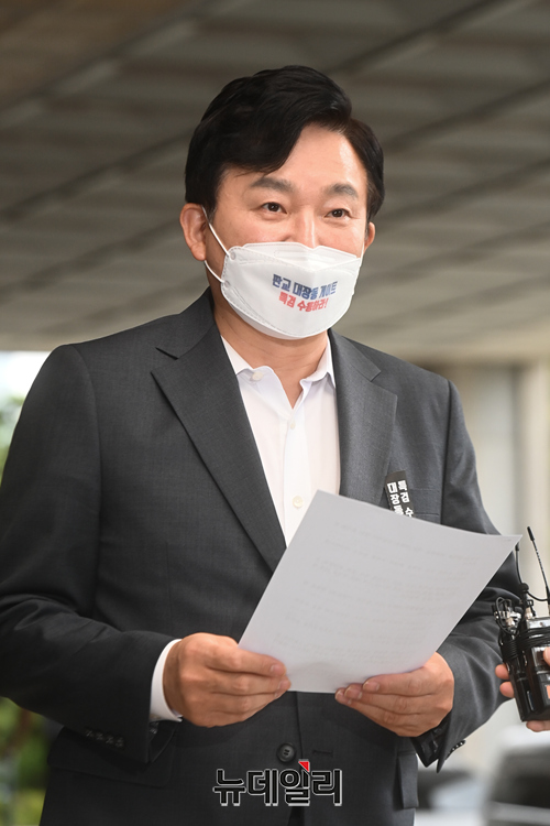 [포토] 대장동 게이트 엄정 수사 촉구하는 원희룡 후보