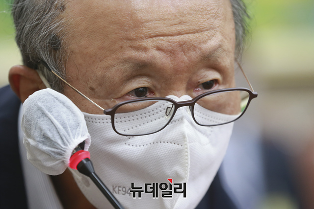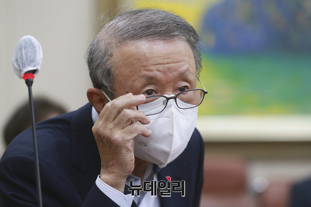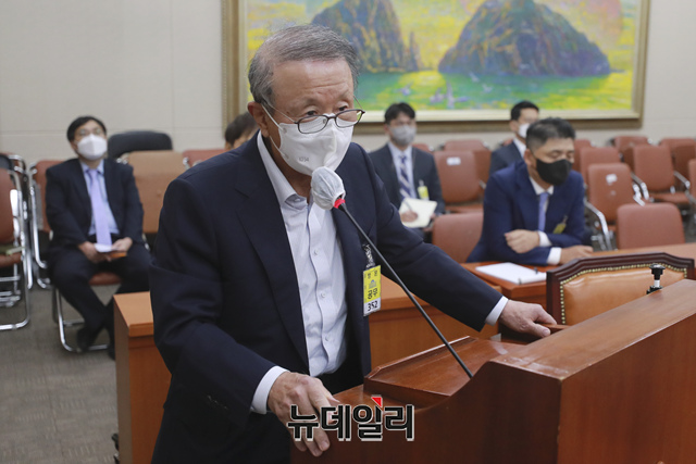 홍원식 남양유업 회장이 5일 오후 국회에서 열린 정무위원회의 공정거래위원회·한국소비자원·한국공정거래조정원에 대한 국정감사에 증인으로 출석해 의원 질문에 답하고 있다. (사진=공동취재단)
