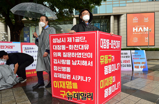 [포토] 대장동 게이트 규탄 1인시위 참석한 최재형-장기표