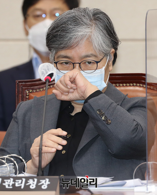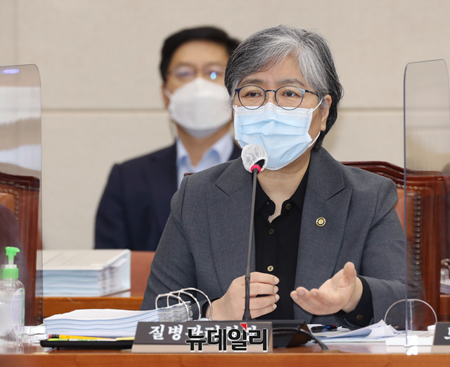 정은경 질병관리청장이 6일 국회에서 열린 보건복지위의 국정감사에 출석해 의원 질의를 듣고 있다. (사진=공동취재단)