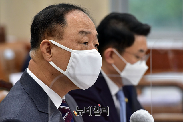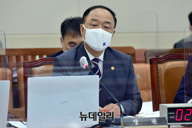 홍남기 경제부총리 겸 기획재정부 장관이 6일 국회에서 열린 기획재정위원회의 기획재정부(조세정책)에 대한 국정감사에 출석해 의원들의 질문에 답하고 있다. (사진=공동취재단)
