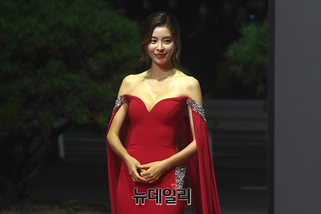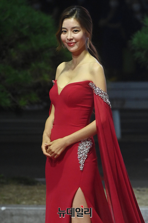 배우 김규리가 6일 오후 부산 해운대구 영화의전당에서 개막한 2021 부산국제영화제(BIFF) 레드카펫에서 포즈를 취하고 있다.