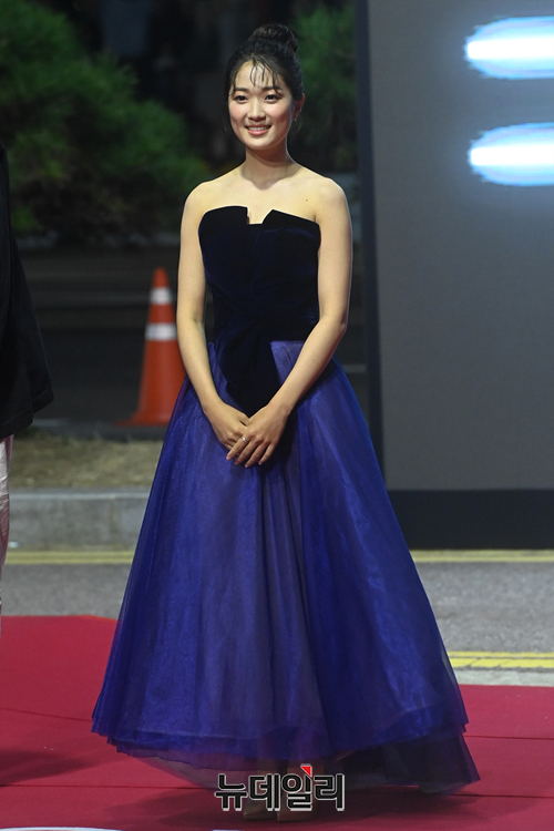 배우 김혜윤이 6일 오후 부산 해운대구 영화의전당에서 개막한 2021 부산국제영화제(BIFF) 레드카펫에서 포즈를 취하고 있다.