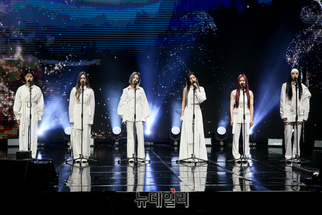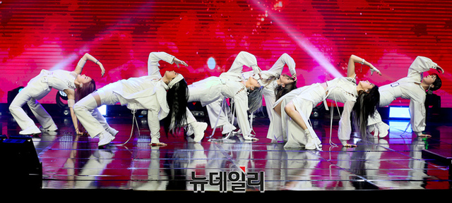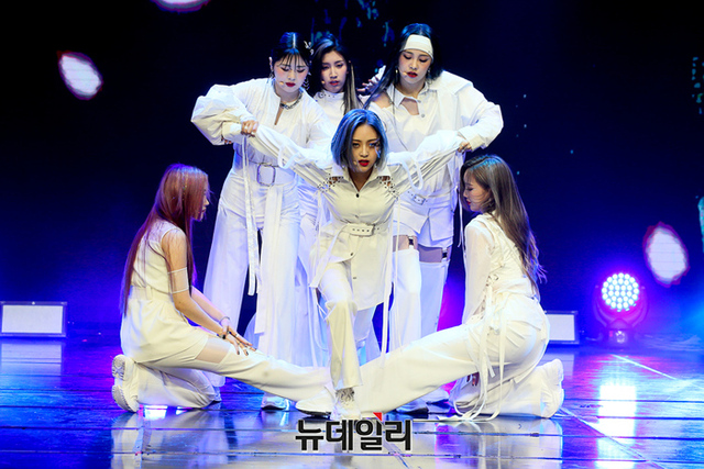 걸그룹 PIXY(픽시)가 6일 오후 온라인으로 열린 3번째 미니앨범 템테이션 발매 기념 쇼케이스에서 타이틀곡 무대를 선보이고 있다.