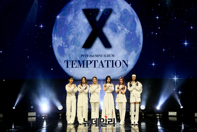 걸그룹 PIXY(픽시)가 6일 오후 온라인으로 열린 3번째 미니앨범 템테이션 발매 기념 쇼케이스에서 포토타임을 갖고 있다.