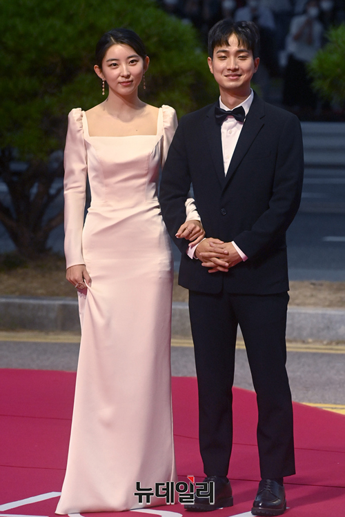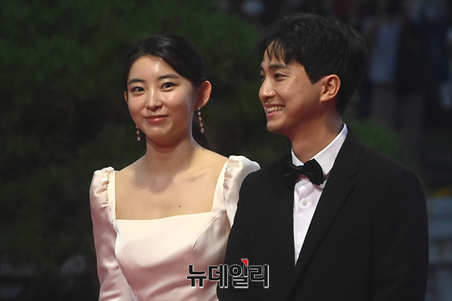 배우 권소현, 권다함이 6일 오후 부산 해운대구 영화의전당에서 개막한 2021 부산국제영화제(BIFF) 레드카펫에서 포즈를 취하고 있다.