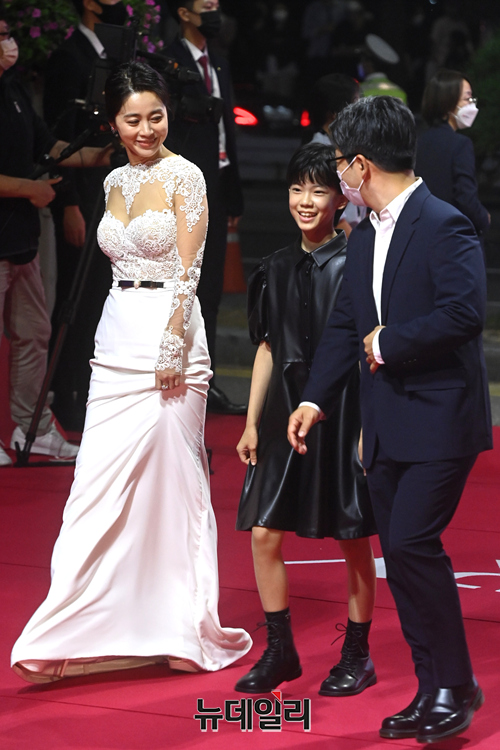 배우 서영희가 6일 오후 부산 해운대구 영화의전당에서 개막한 2021 부산국제영화제(BIFF) 레드카펫에서 포즈를 취하고 있다.