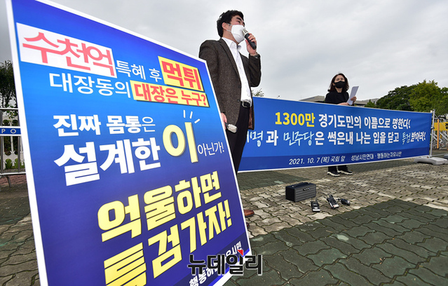 더불어민주당과 이재명 경기도지사는 대통령이 되겠다고 나선 자라면, 전국의 시민들이 유력 대선주자가 연루된 대장동 게이트 의혹이 밝혀야 한다며 외치는 목소리를 가슴 깊게 새겨듣고 스스로 의혹 해결에 나서야 한다는 점을 인지하길 바랍니다.