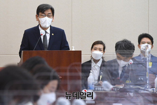 엄재식 원자력안전위원회 위원장이 7일 국회에서 열린 과학기술정보방송통신위원회의 원자력안전위원회 등에 대한 국정감사에서 업무보고를 하고 있다. (사진=공동취재단)
