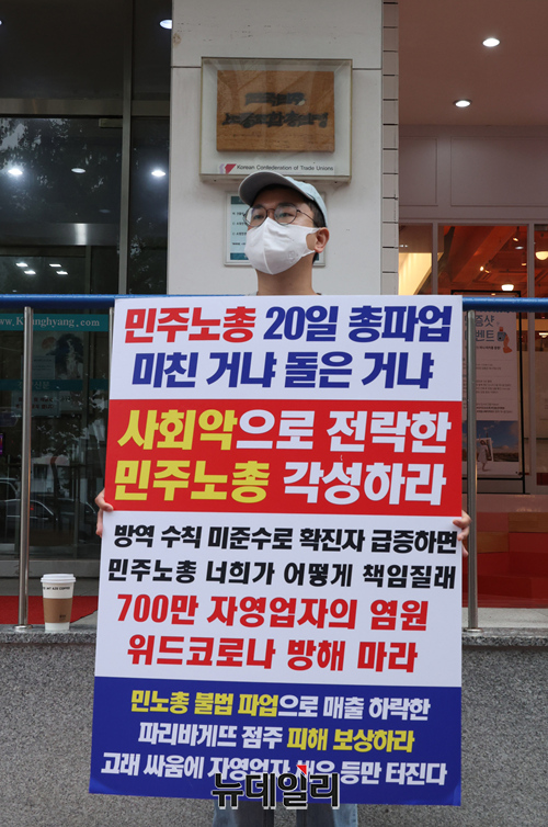[포토] 자영업연대, 민노총 1020총파업 규탄 1인시위