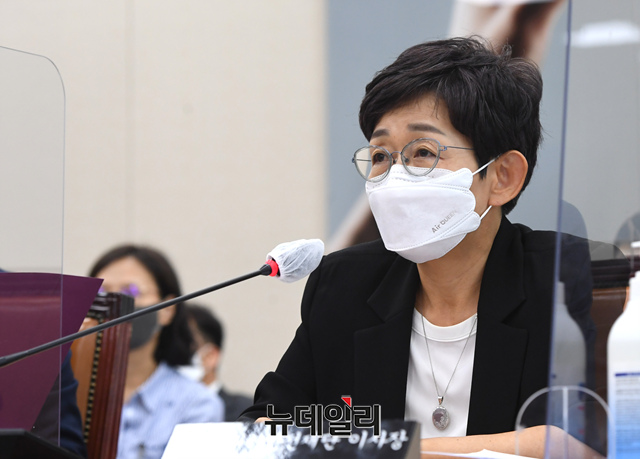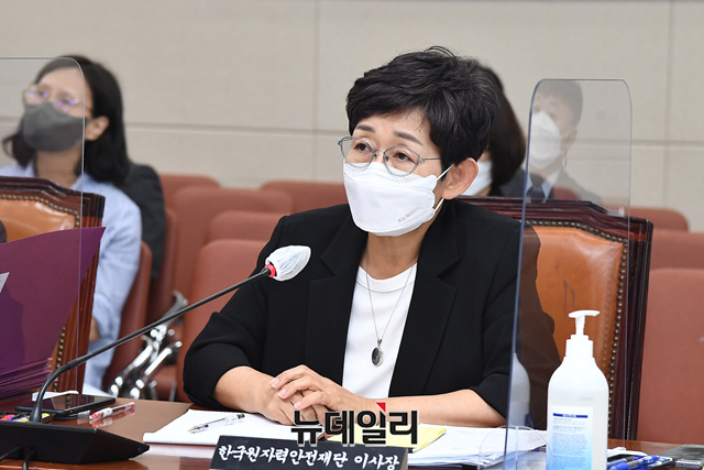 김혜정 한국원자력안전재단 이사장이 7일 오후 국회에서 열린 과학기술정보방송통신위원회 2021년도 원자력안전위원회, 한국원자력안전기술원 등에 대한 국정감사에서 의원 질의에 답변하고 있다. (사진=공동취재단)