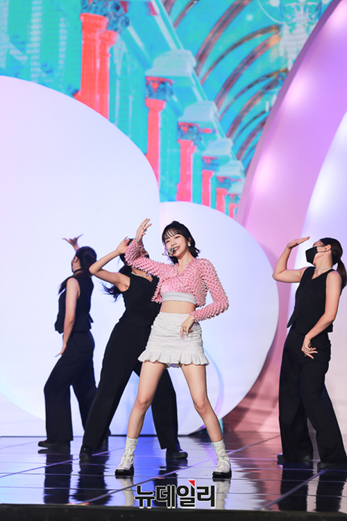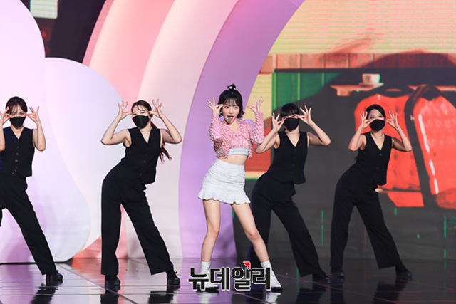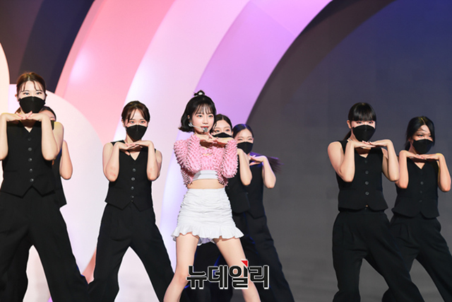 걸그룹 아이즈원 메인 보컬 출신 조유리가 7일 오후 온라인으로 열린 솔로 데뷔 싱글 앨범 '글래시(GLASSY)' 발매기념 쇼케이스에서 신곡을 선보이고 있다.