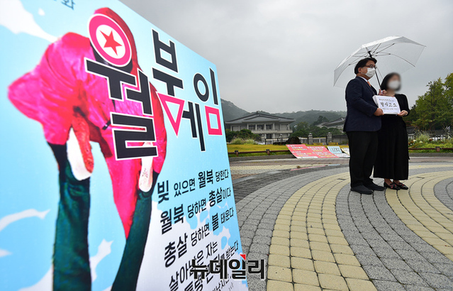 [포토] 청와대 1인시위 돌입한 북한피격 사망 공무원 유족