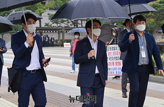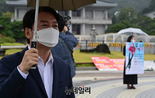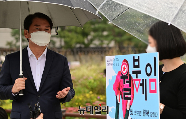 [포토] 북한피격 공무원 유족 1인시위 현장 찾은 안철수 국민의당 대표