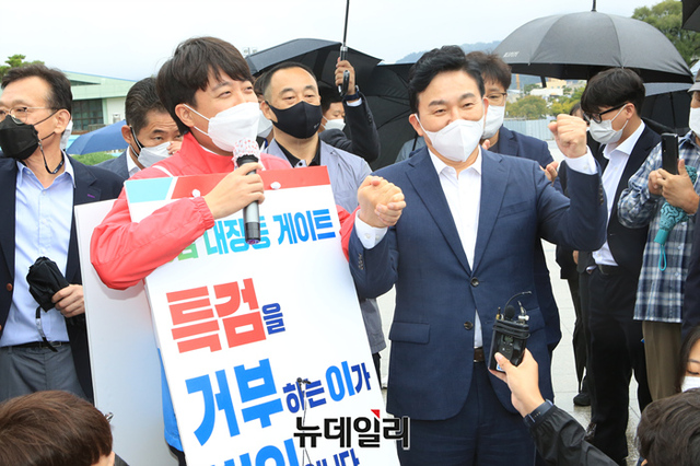 [포토] 옛전남도청서 '대장동 게이트' 특검 촉구하는 이준석 대표