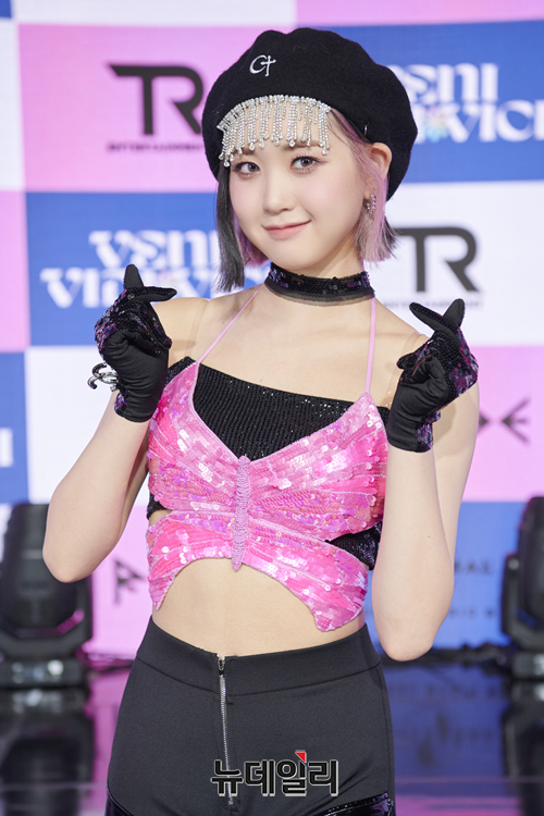 걸그룹 트라이비 멤버 미레가 12일 오후 온라인으로 진행된 첫 번째 미니앨범 '베니 비디 비치(VENI VIDI VICI)' 발매 기념 쇼케이스에서 포즈를 취하고 있다.라틴어로 '왔노라 보았노라 이겼노라'라는 뜻인 앨범 '베니 비디 비치'는 트라이비가 아직 가보지 못한 새로운 세계를 개척하고, 자신들만의 길을 가겠다는 포부를 담아낸 곡이다.