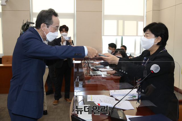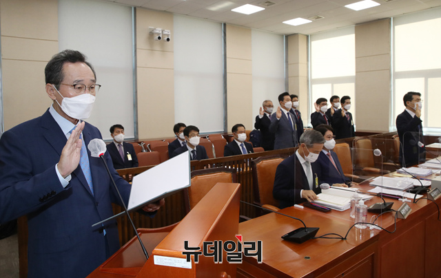 송하진 전라북도지사가 13일 국회 행정안전위원회의 전라북도, 대구광역시 국정감사에서 증인선서를 하고 있다. (사진=공동취재단)