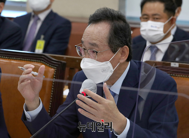 송하진 전라북도지사가 13일 국회 행정안전위원회의 전라북도, 대구광역시 국정감사에서 의원들의 질문에 답하고 있다. (사진=공동취재단)