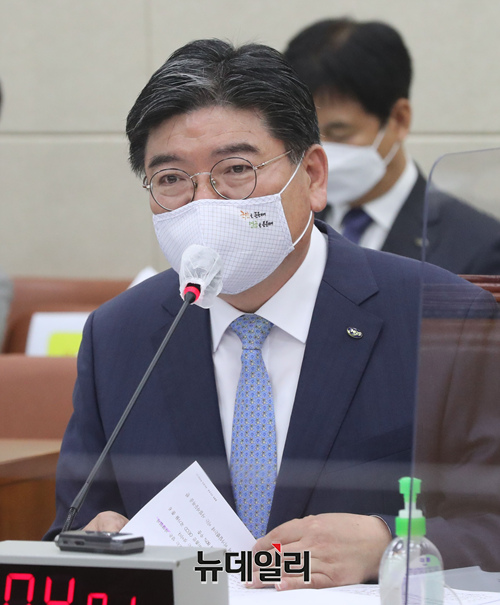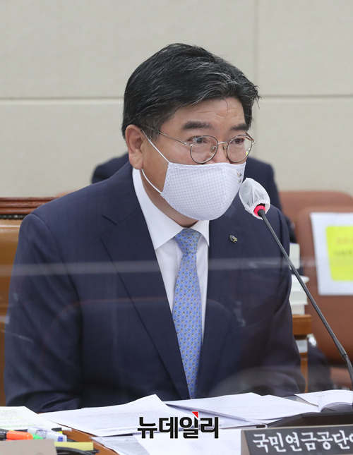 김용진 국민연금공단 이사장이 13일 오전 국회에서 열린 국회 보건복지위원회의 국민연금공단에 대한 2021년도 국정감사에서 의원들의 질문에 답하고 있다. (사진=공동취재단)