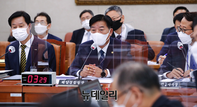 김홍희 해양경찰청장이 13일 오전 국회에서 열린 농림축산식품해양수산위원회 해양경찰청, 부산항만공사, 한국해양과학기술원 등에 대한 국정감사에서 의원들의 질문에 답하고 있다. (사진=공동취재단)