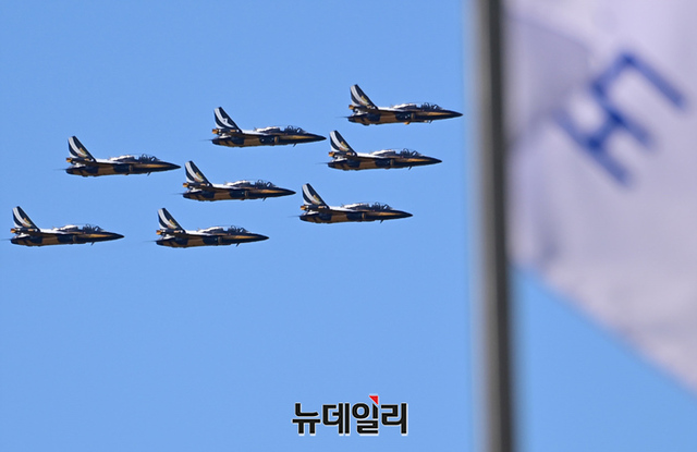 [포토] 아덱스 앞두고 시험 비행하는 블랙이글스