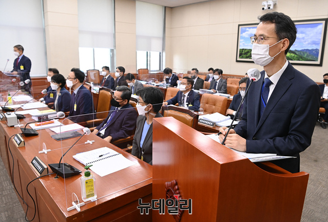 조희송 한강유역환경청 청장이 13일 오후 서울 여의도 국회에서 진행된 환경노동위원회의 중앙환경분쟁조정위원회 등에 대한 국정감사에서 의원 질의에 답하고 있다. (사진=공동취재단)