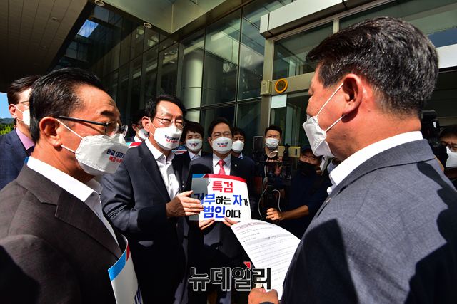 [포토] 성남시청 찾은 국민의힘 "대장동 국감자료 제출하라"