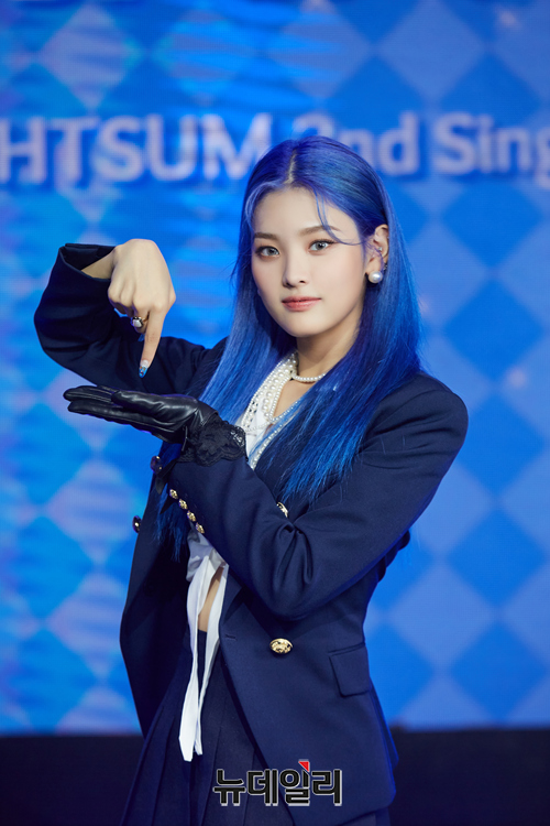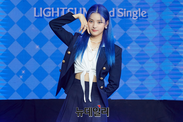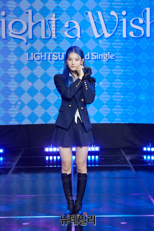 걸그룹 라잇썸 멤버 상아가 13일 오후 온라인으로 진행된 두 번째 싱글 '라잇 어 위시(Light a Wish)' 발매 기념 쇼케이스에서 포즈를 취하고 있다.