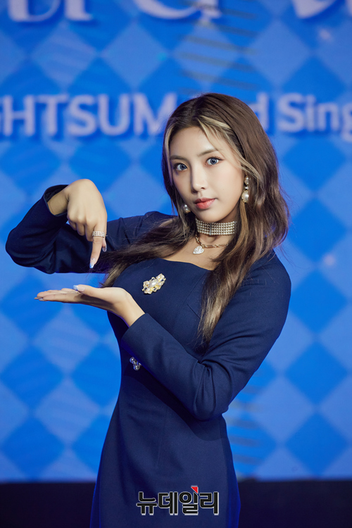 걸그룹 라잇썸 멤버 초원이 13일 오후 온라인으로 진행된 두 번째 싱글 '라잇 어 위시(Light a Wish)' 발매 기념 쇼케이스에서 포즈를 취하고 있다.